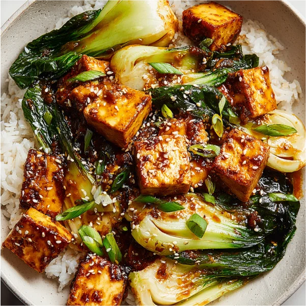 This recipe uses firm tofu and bok choy steamed together, then topped with a savory garlic-ginger sauce. It’s an easy, meatless meal that’s high in plant based protein and greens—great for a healthy, quick dinner.