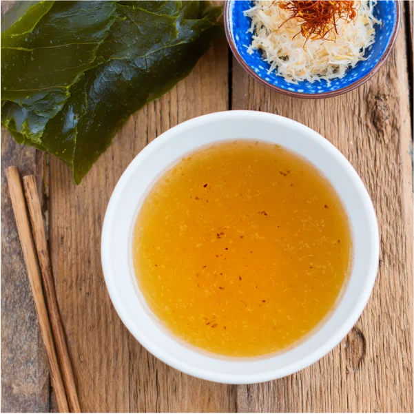 This recipe makes dashi—a light Japanese soup broth made from kombu (seaweed) and bonito flakes. Dashi adds a savory flavor to soups, noodles, and other dishes, and it can be used as a substitute for chicken broth.