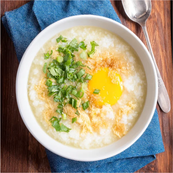 Egg drop congee is a warm, savory rice porridge thickened with swirled egg. This recipe uses nutrient-rich brown rice instead of white rice, providing more fiber and essential nutrients.